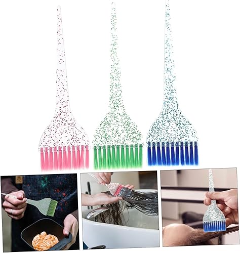 LIFKOME 3pcs Hair Tint Brush with Crystal Handle for Smooth and Even Hair Coloring Professional Hairdressing Tool for Salon and Home Use Red Blue and Green Colors