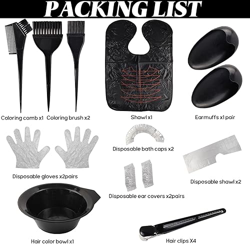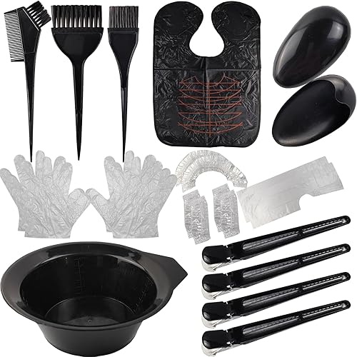 18PCS Hair Dye Coloring Kit, DIY Salon Tool - Hair Dyeing Bleaching Kit With Bowl, Dye Brush, Ear Cover, Gloves, Hair Coloring Cape, Hairclips (Black)