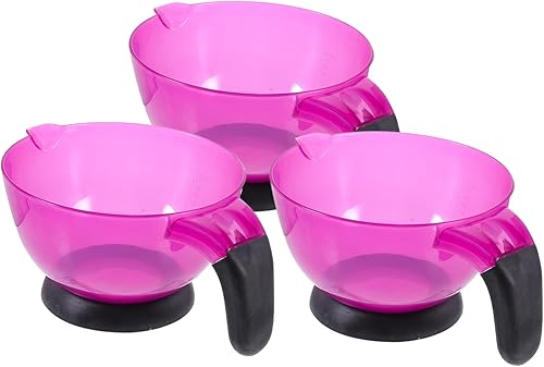 3PCS Ergonomic Hair Dye Mixing Bowls Set Thick Plastic Tint Bowls Handle for Hair Coloring Home Salon Use Easy Mixing