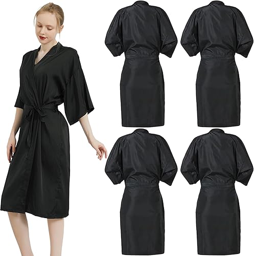 WUWEOT 4 Pack Salon Client Gown Robes Cape, Waterproof Hair Dye Cape, 43 Inch Long Black Soft Kimono Style Barber Smock for Hair Stylist with Adjustable Tie to Hair Cutting, Hair Coloring