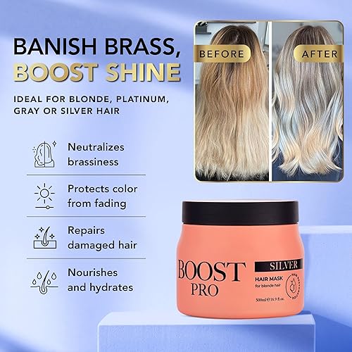 Purple Mask for Silver Hair – Toning Treatment for Gray, Blonde & Brassy Colors – Salt & Sulfate Free Anti Brass Blue Toner – Deep Conditioning for Colored & Bleached Hair (16.9 fl oz)