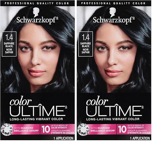 Schwarzkopf Color Ultime Hair Color, 1.4 Sapphire Black, 1 Application - Permanent Black Hair Dye for Vivid Color Intensity and Fade-Resistant Shine up to 10 Weeks (Pack of 2)