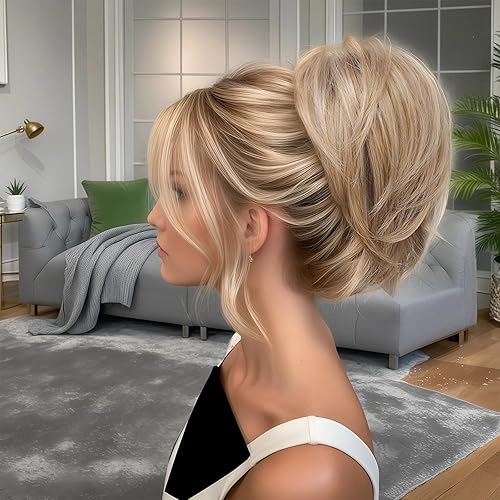 10-Inch Blonde Messy Bun Hair Extension with Claw Clip, Heat-Resistant & Lifelike Ponytail Accessory