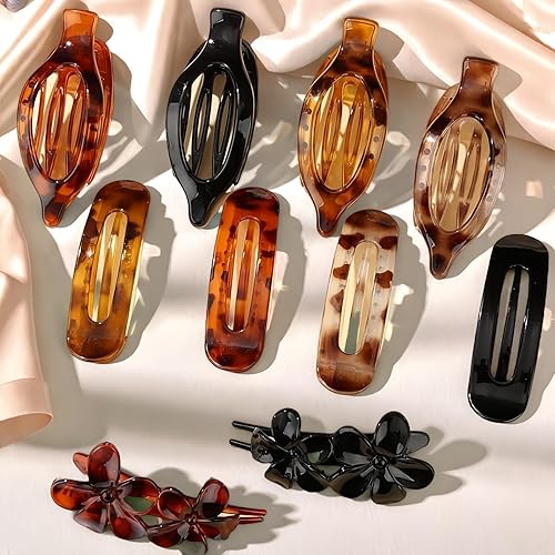10 Pcs French Flat Hair Clips for Women, 3 Styles Non-slip Flat Claw Clips for Women Girls Thin Thick Hair Strong Hold Styling Accessories(Tortoiseshell)