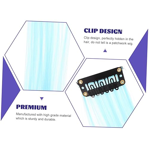 10Pcs Clip-in Colored Hair Extensions Lightweight Straight Synthetic Hairpieces for Women Cosplay Party Natural Look Highlights in Light Blue and Mint Blue