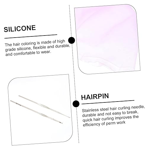 1set Reusable Silicone Hair Coloring Highlighting Hat with Crochet Hooks for Hair Dyeing Suitable for Home and Salon Use Easy to Use for Beginners and Professionals(Pink)