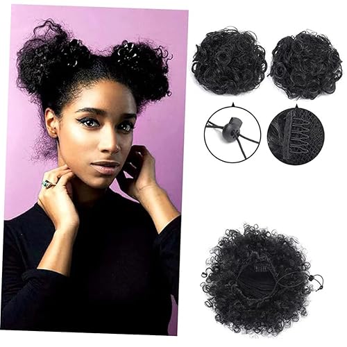 2pcs Afro Curly Bun Hair Extensions Drawstring Chignon for Women Lightweight Synthetic Ponytail Hairpiece for Daily Use Cosplay and Theme Parties