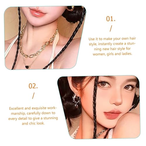 2Pcs Clip In Braid Hair Extensions Synthetic Braided Hair Piece Long Front Side Bangs for Women Easy Styling Black