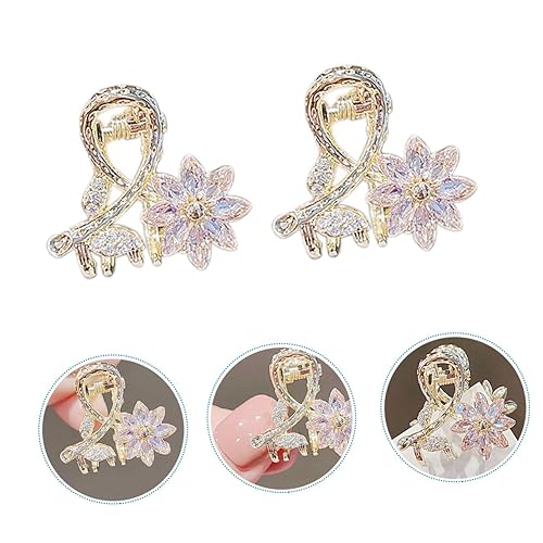 2Pcs Crystal Flower Hair Claw Clips for Women and Flexible Hair Jaw Clips for Thick Thin Styling and Holding Pink Floral Design Accessories