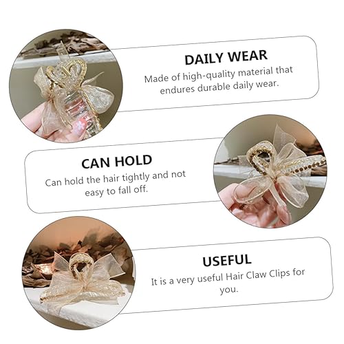 2pcs Elegant Women Hair Claw Clips Jaw Clips with Bow Design Secure Hold Hair Accessories for Daily Wear and Styling Beige Color