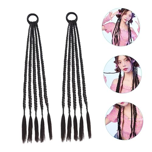 2pcs Fake Hair Ponytail Extensions for Braids Curly Ponytail Extension Hair Tie for Women Girls Ladies