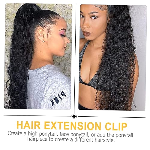 2pcs Long Black Curly Ponytail Hair Extensions Wavy Hairpieces for Women Natural Touch Synthetic Wrap Around Style for Daily and Party Use