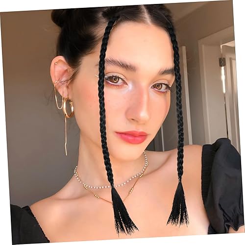 2Pcs Synthetic Braid Wig Hair Extensions with Clip Long Front Side Bang Braided Ponytail for Women and Easy to Wear for Stunning Hairstyles and Eye Catching Looks
