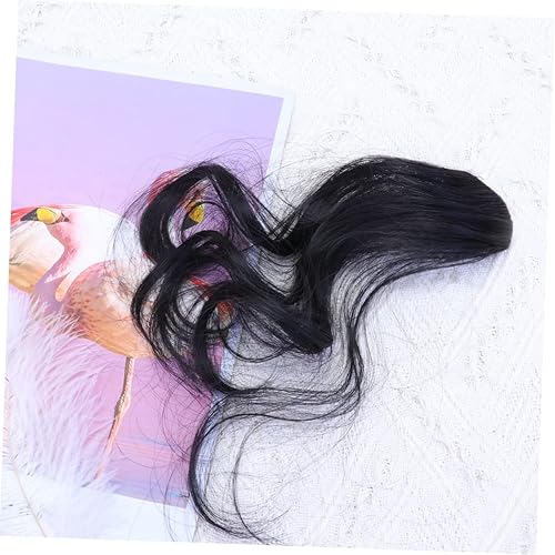 2PCS Womens Wavy Fake Hair Bangs Extensions Natural Black Black Brown High Temperature Fiber Curly Bangs Hair Accessories for Daily Wear and Parties
