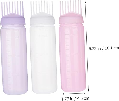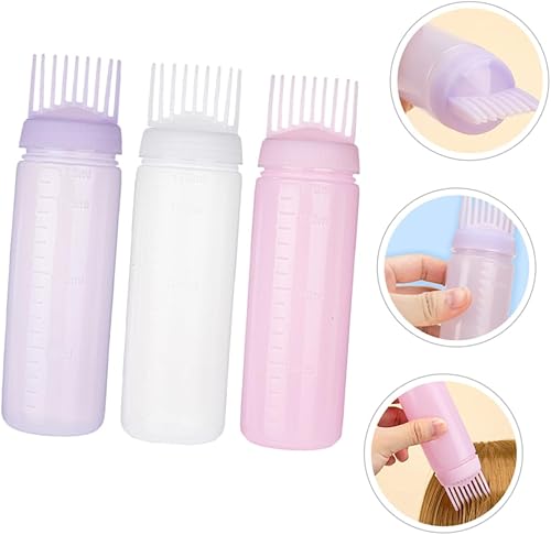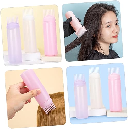3pcs Hair Coloring Applicator Bottle Root Comb Squeeze Applicator for Hair Dye and Scalp Oil Translucent Design and Dyes