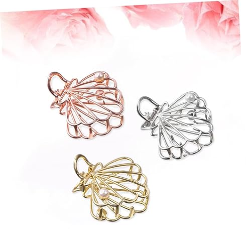 3pcs Hollow Pearl Shell Hair Claw Clips for Women Rose Gold Bright Gold Bright Silver Metallic Jaw Clamps Water-resistant Hair Styling Accessories for Weddings Parties
