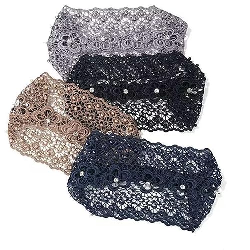 【Comfortable & Secure Fit】 Exquisite embroidered lace fabric, lace headband has good elasticity,not easy to deform,and does not shave the hair;Flexible, non-slip wide bands stay put without pinching, ideal for all-day wear or dancing at events.