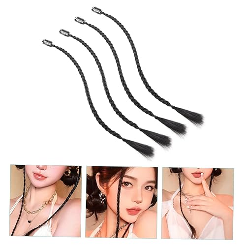4Pcs Synthetic Braided Clip In Hair Extensions Long Side Bang Braids for Women Black Ponytail Piece for Parties Cosplay Festivals