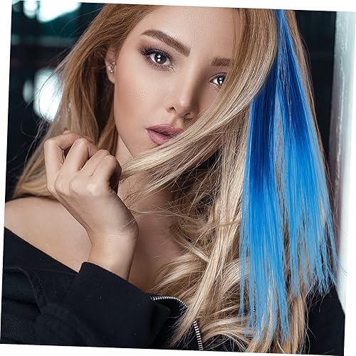 6Pcs 50cm Gradient Blue Synthetic Hair Extensions for Women Colorful Hairpieces for Girls Highlight Wig Accessories for Parties and Costumes