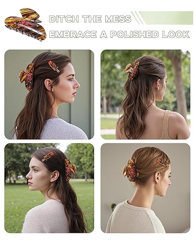 3-Piece Set: Get one large banana clip and two creaseless hair clips, all featuring beautiful floral prints and sparkling rhinestones. This stylish set effortlessly mixes and matches with other accessories, letting you create chic hairstyles for any look