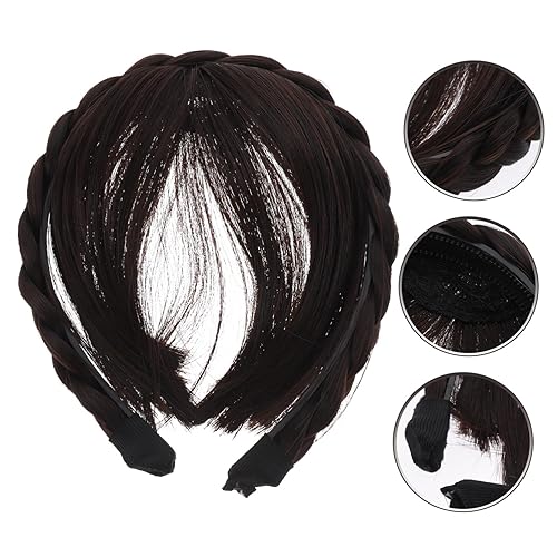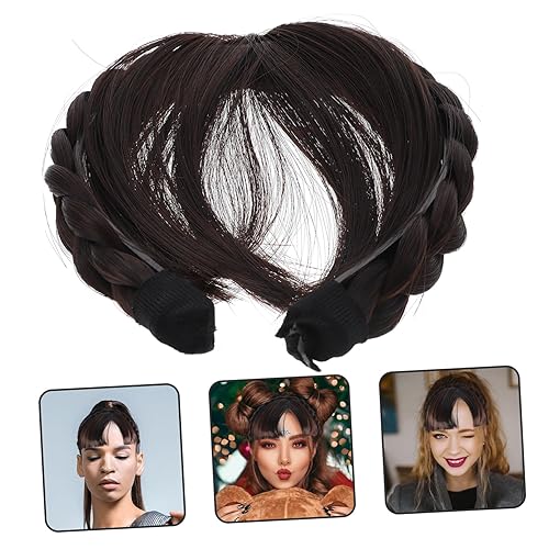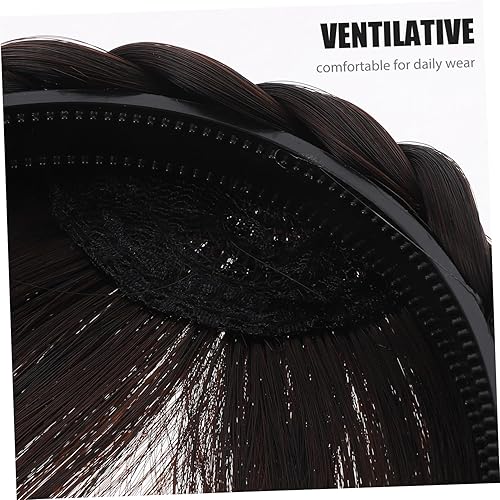 Adjustable Synthetic Wigs with Natural Front Hair Bangs Fringe Extensions for Women and Dark Brown Air Bangs Headband Comfortable and Breathable Daily Wear