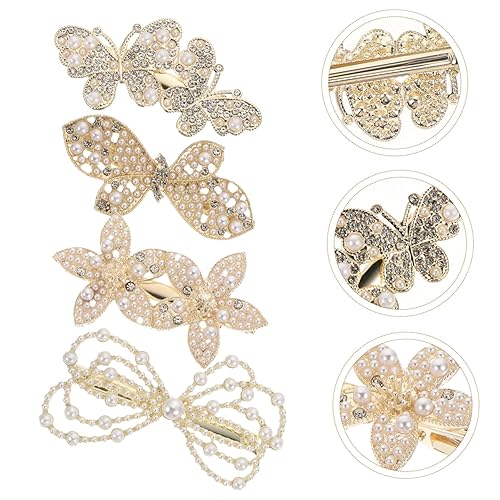 Baluue 4pcs Butterfly Pearl Flower Hair Clips Shiny Metal Barrettes for Women Elegant Hair Accessories for Weddings Parties and Daily Styling