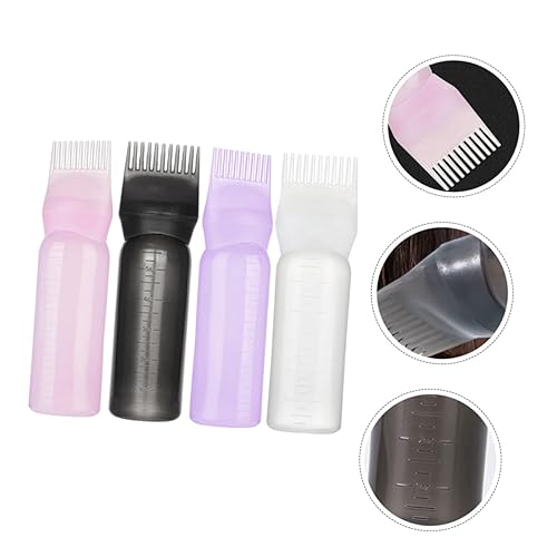 Beaupretty 4pcs Hair Dyeing Bottles with Root Comb Applicators Refillable Hair Color Squeeze Bottles for Precise Application Salons and Home Use