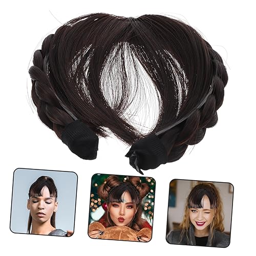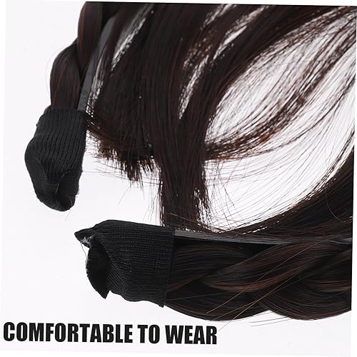 Beaupretty Adjustable Headband Synthetic Wigs with Front Hair Bangs Dark Brown Comfortable Ventilative Fringe Extensions for Women Natural Look for Daily and Party Wear
