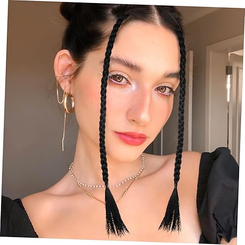 BESTYASH 2Pcs Braided Hair Extensions Clip In Synthetic Ponytail Wig with Front Side Bangs Long Braided Hair Piece for Women Ladies Color Custom and Eye Catching Looks