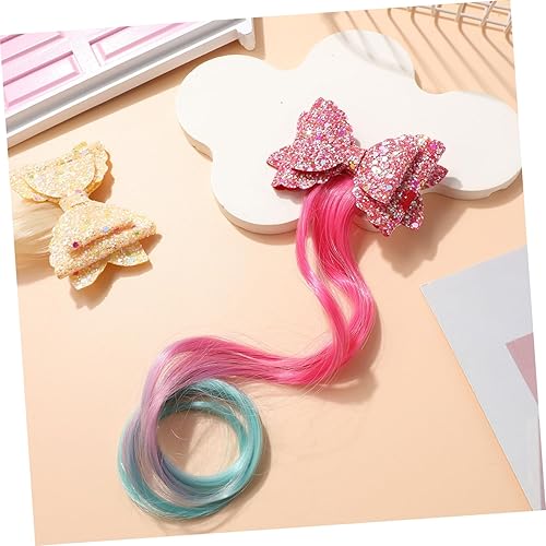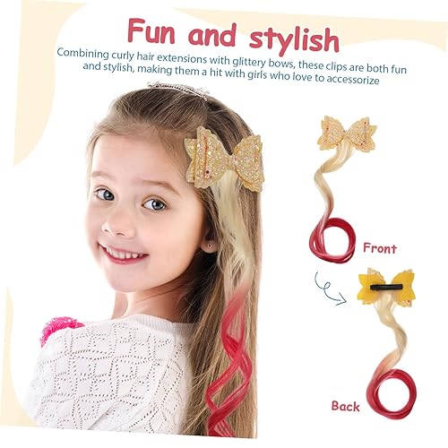 BESTYASH 3pcs Clip In Hair Extensions for Glitter Bow Clips Lightweight Curly Hair for Easy Styling Accessories for Parties and Dress Up