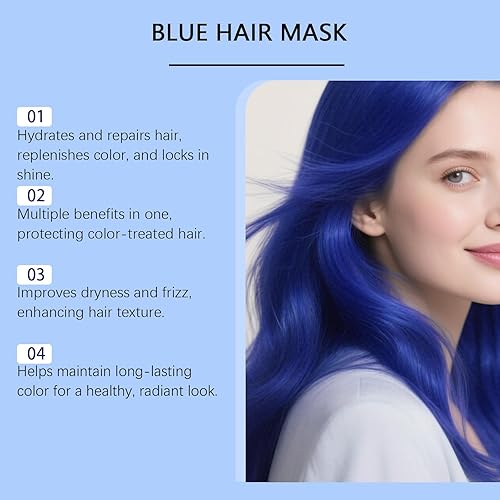 Comment on "Blue Hair Mask for Color-Treated Hair, 90g Hydrating Hair Treatment to Lock Color & Restore Shine, Moisturizing Hair Mask for Dyed Hair, Reduces Fading & Roughness, Smooths Hair (90g/3.17fl.oz)(3.17 Fl Oz (Pack of 1))"