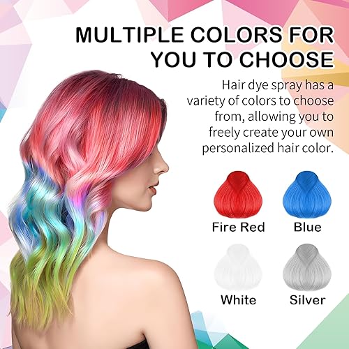 Temporary Hair Color Spray: Hair color spray has four colors: silver, red, blue and white, just spray it easily and dye your hair instantly, it is convenient and fast, say goodbye to the tedious hair dyeing process