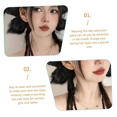 Braided Ponytail Extension Wig Synthetic Hair for Women Natural Black Bow Double Braids Easy Wear Skin Friendly Cosplay Party Hairpiece Stylish Hair Extensions