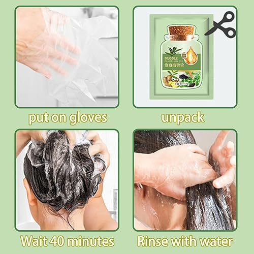 Simple Application: The bubble hair dye is easy to apply, with only four simple steps. First, put on the disposable gloves. Then, open the package and apply the dye evenly to your hair, rubbing it in. Wait for about 40 minutes (depending on your hair length), and then rinse it off with water and dry with a towel.