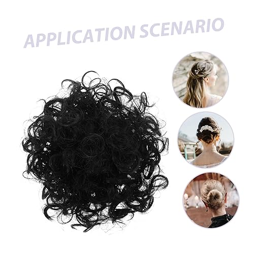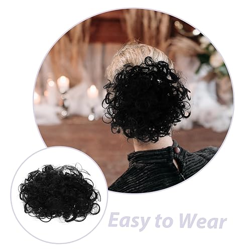 Bun Wig Drawstring Hairpieces for Women Tousled Fake Bun Natural Wavy Curly Chignon Extensions Thick Toppers Messy Woman Scrunchies Loose Style Human Hair Bun Chemical Fiber Black