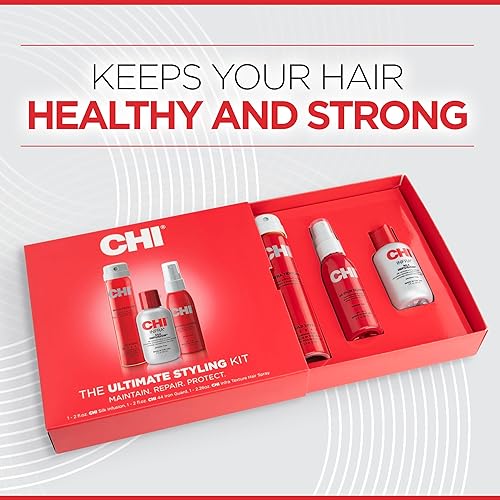 ULTIMATE STYLING KIT: Elevate your styling experience with this haircare trio. Includes CHI Infra Silk Infusion for strengthened locks, CHI 44 Iron Guard for heat protection, and CHI Infra Texture Hair Spray, a fast-drying, build-up-free setting spray.