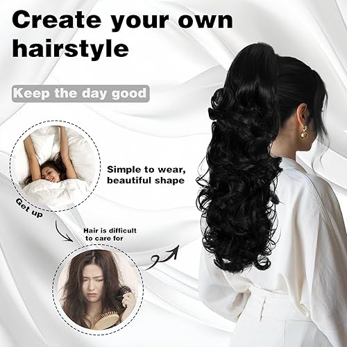 [ Quick styling] No need for hair extensions, ponytail wigs can be completed with one hand, curly styling is care-free, saving the morning Dressing time