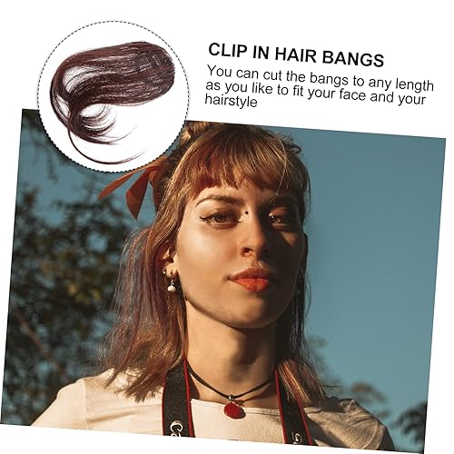Clip-in Hair Bangs Extensions Long Airy Fringe Fake Hair Pieces for Women Dark Brown Color for Everyday Look