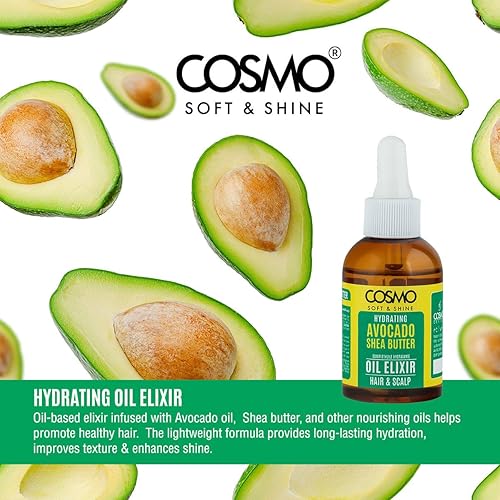 Cosmo Hair Care Soft & Shine Hydrating Avocado & Shea Butter Oil Elixir Hair & Scalp 60ml - 2.02 fl.oz, Hair Treatment, Non Greasy, Nourishing, Restore, Paraben & Silicons Free, For Men & Women
