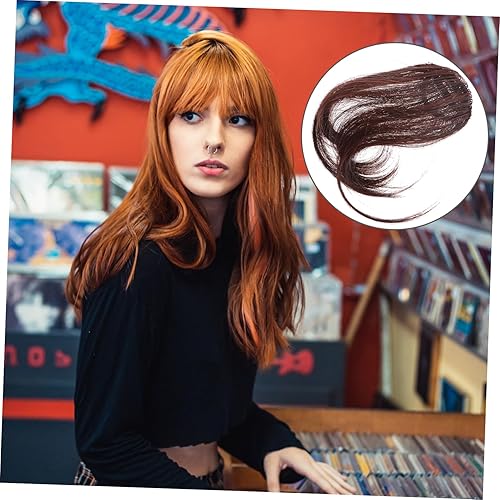Dark Brown Clip in Hair Fringe Extensions Heat Resistant Fake Hair Pieces with Matte Finish Bangs for Stylish Updos and Everyday Wear