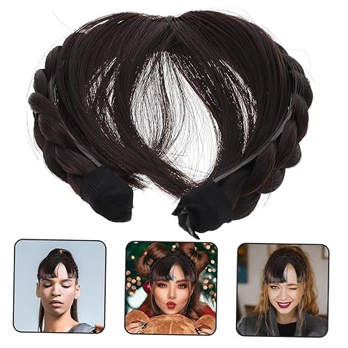 DECHOUS Adjustable Headband Bangs Synthetic Wigs Dark Brown Natural Looking Front Hair Fringe Extensions for Women Comfortable Ventilated Fit Any Face Shape Daily Party Cosplay