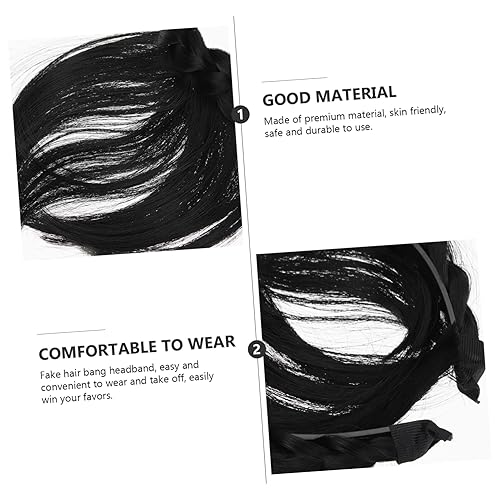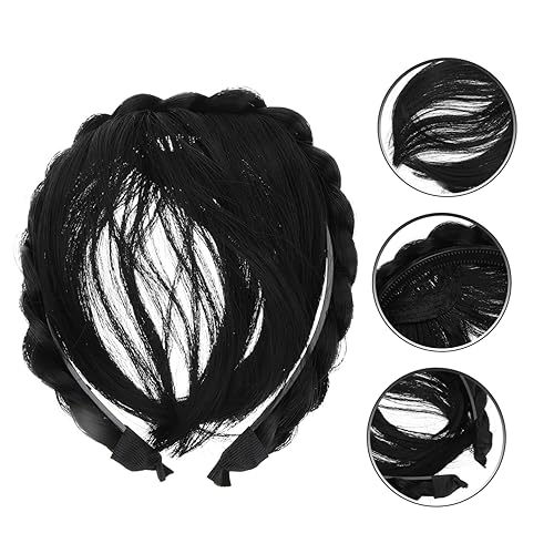 Didiseaon Voluminous Braided Wig Headband with Fake Bangs Heat Resistant Hair Accessory for Women and Easy to Wear Natural Black Hair Extension for Charming Hairstyles