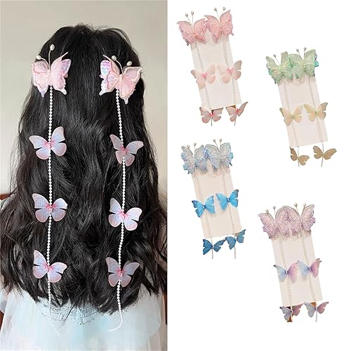 Elegant braided hair chain designing, pearl butterfly braided hairpin, making it easy to create elegant hairstyles