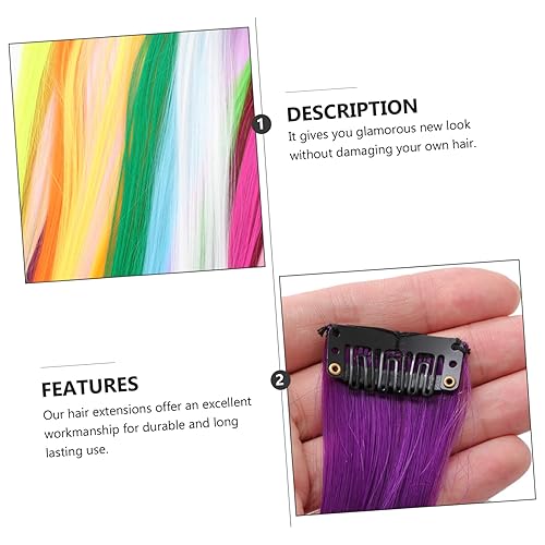 FRCOLOR 18pcs Colorful Hair Extensions Seamless Clip Hair Pieces for Cosplay Weddings and Parties Curly Straight Styling for Adults DIY Fashion
