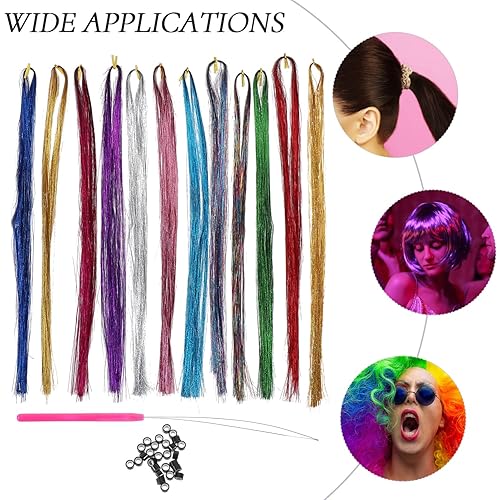 Comment on "FRCOLOR 1set Sparkly Hair Tinsel Strands Hair Extensions Kit with Crochet Hook Beads for Women for Parties Daily Wear"