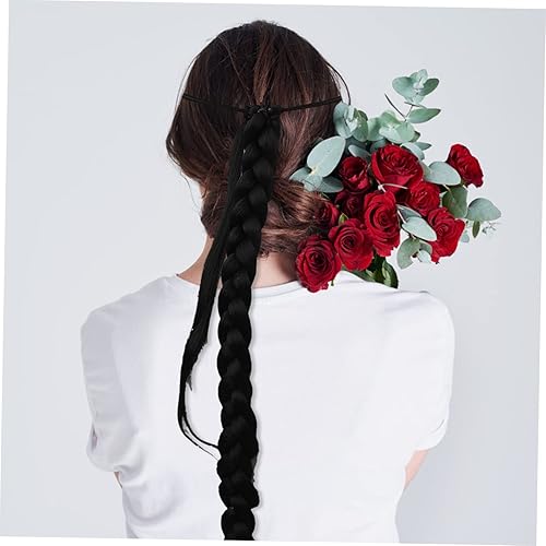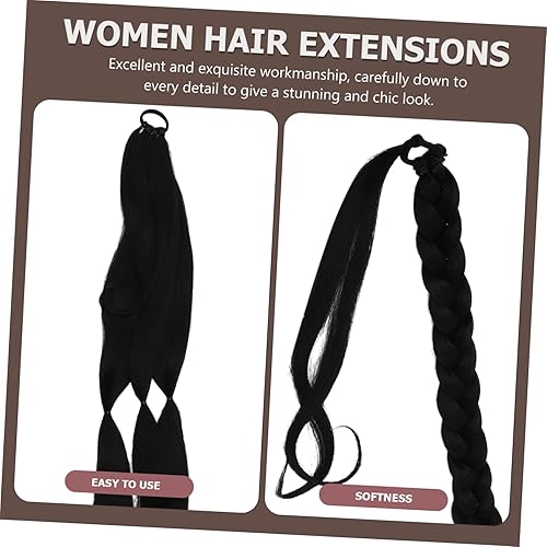 FRCOLOR 80cm Braided Ponytail Extension for Women Wrap Around Synthetic Hair Piece Long Wavy Ponytail Hair Extension for Daily Use and Special Occasions(Black)