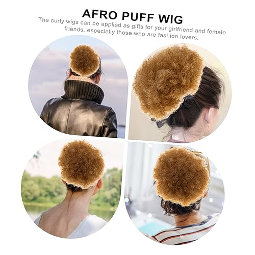 FRCOLOR Afro Curly Wigs High Puff Bun Hairpieces Synthetic Hair Extensions for Women 1 Pack Lightweight Easy to Style for Everyday Use and Special Occasions