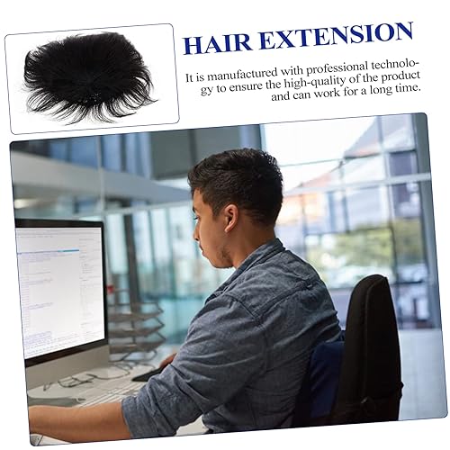 FRCOLOR Male Human Hair Wig Piece for Balding Men Machine Woven Hairpiece Natural Black Realistic Topper for Daily Wear Parties Cosplay Lightweight and Hair Extension Accessory
