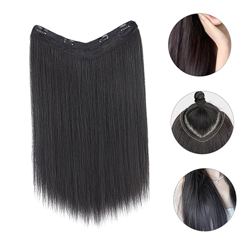 FRCOLOR V-Shaped Clip-in Hair Extensions for Women 1 Piece 40CM Long Straight Synthetic Hair Piece Clip for Everyday Use(60X20CM)