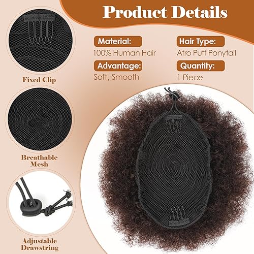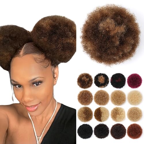Fullart Afro Puff Extension for Black Women #4 Medium Brown Super Soft Shiny Bouncy Hair Extensions Clip On Kinky Curly Ponytail Bun(#02 Dark Brown,Large)